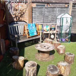 This gallery of photos are just examples of some of the setup and resources we have here. Regular photographs are posted on our social media sites if you’d like to see more! As you can see, as well as creating an open-plan layout in the church hall, we also access the outdoors regularly. We enjoy nature walks on Cissbury Ring, bubbles and shaving foam in the garden and plenty of play involving dinosaurs 🙂