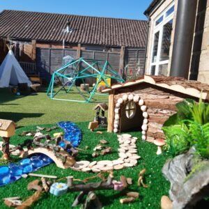 This gallery of photos are just examples of some of the setup and resources we have here. Regular photographs are posted on our social media sites if you’d like to see more! As you can see, as well as creating an open-plan layout in the church hall, we also access the outdoors regularly. We enjoy nature walks on Cissbury Ring, bubbles and shaving foam in the garden and plenty of play involving dinosaurs 🙂